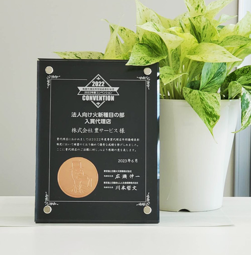 この制度は全国のプロ代理店を対象とした表彰制度で、「法人向け火新種目」という種目において入賞いたしました。