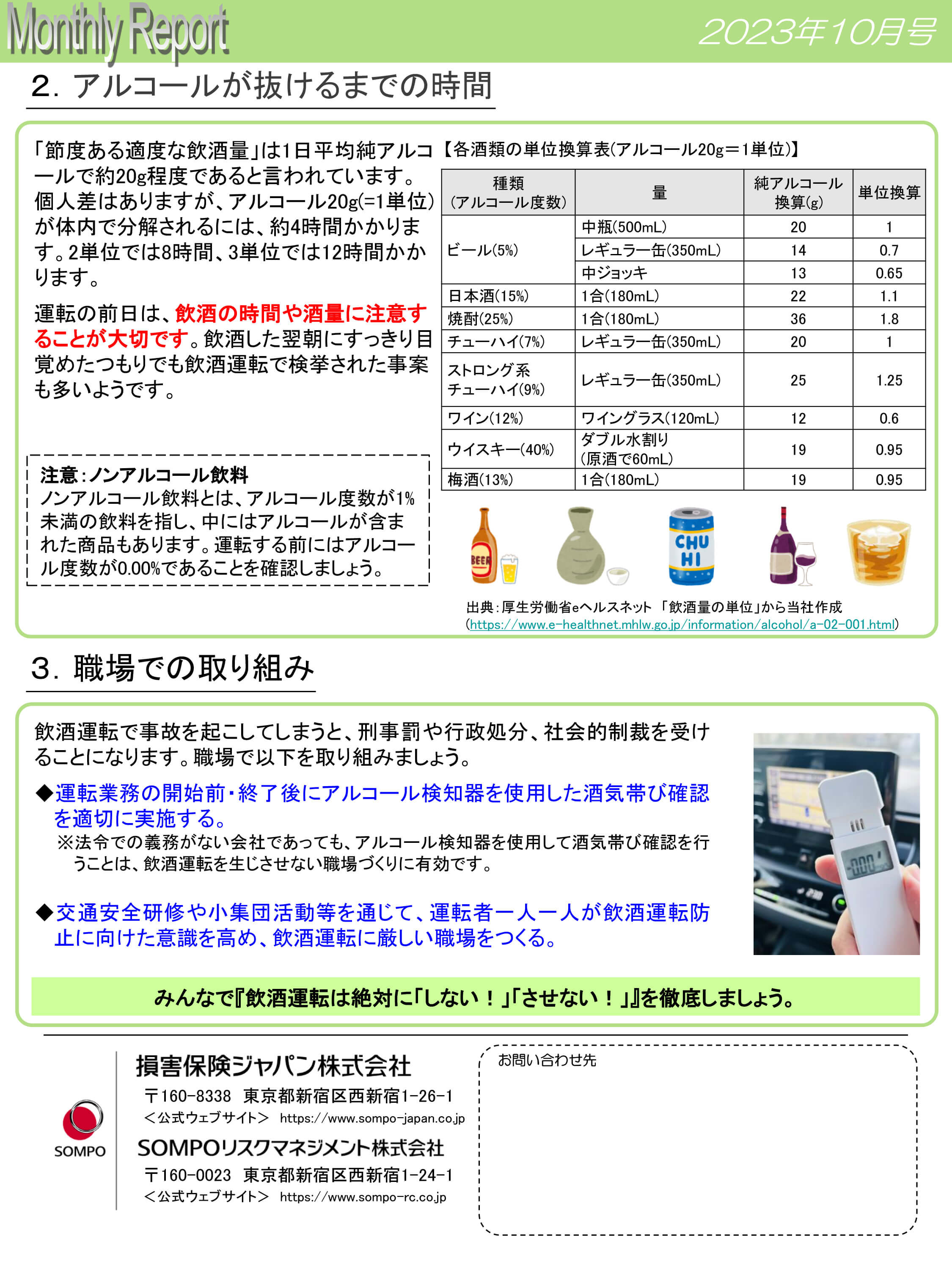 SOMPOリスクマネジメント発行の交通安全ニュースMonthlyReport10月号です。
