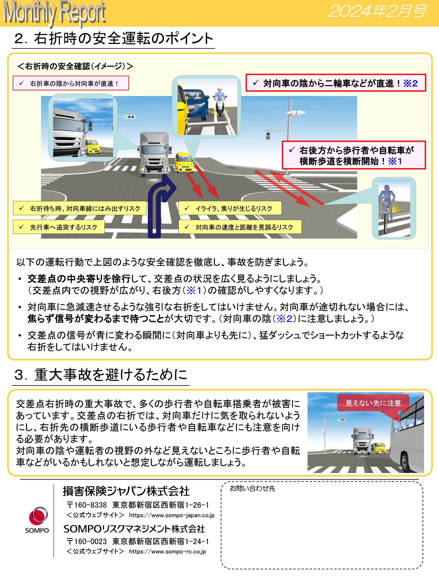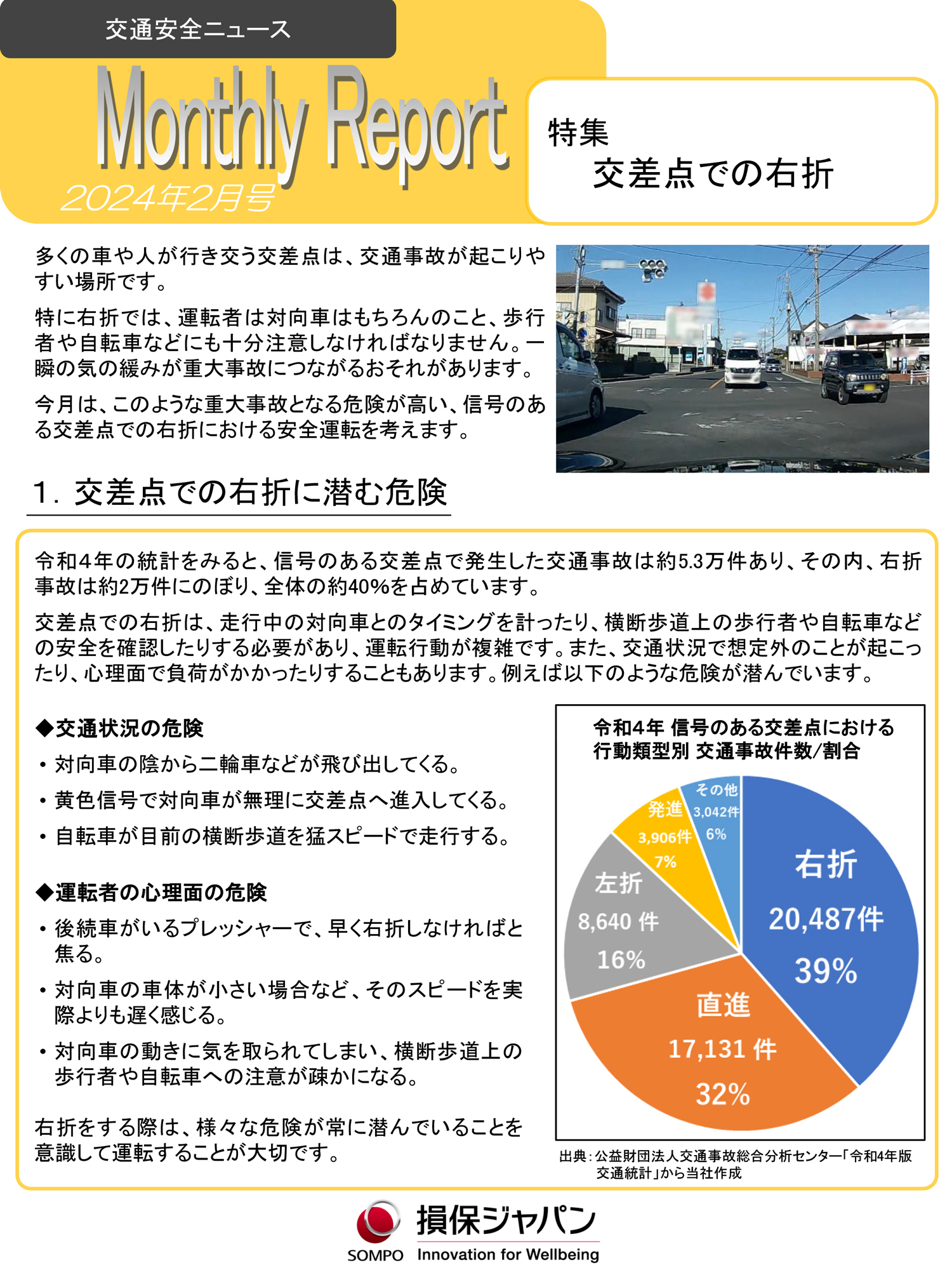 SOMPOリスクマネジメント発行の交通安全ニュースMonthlyReport2月号です。