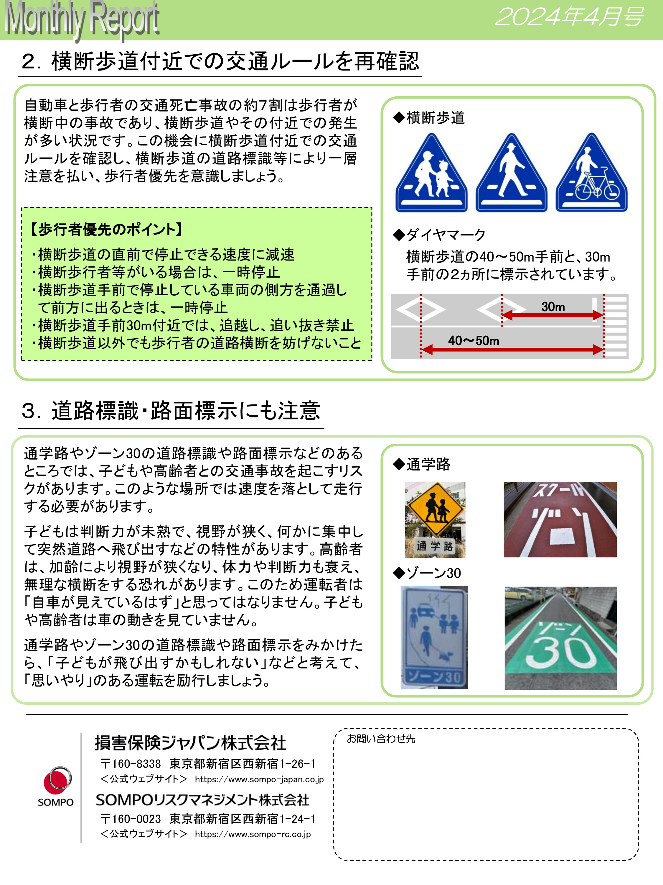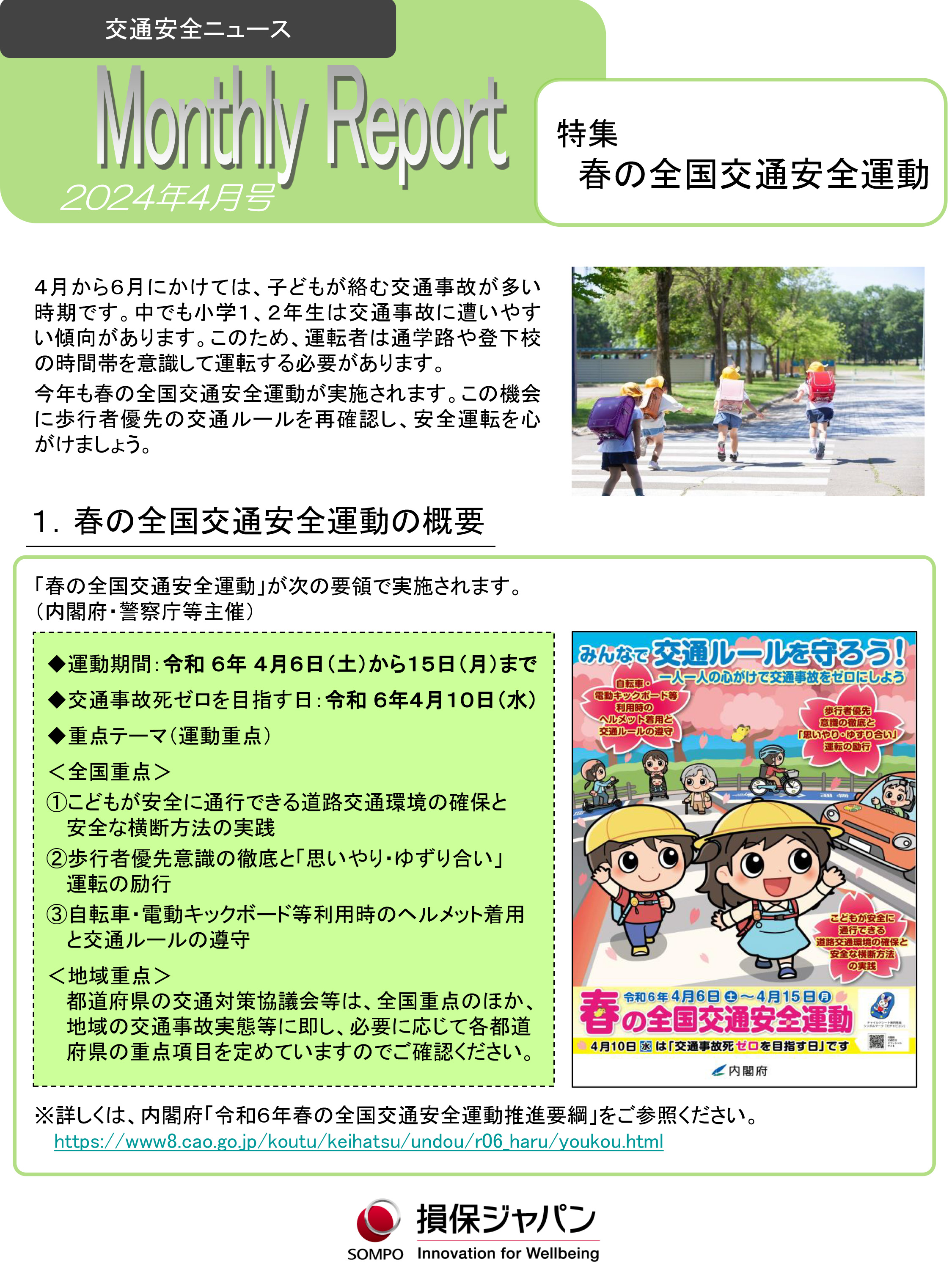 SOMPOリスクマネジメント発行の交通安全ニュースMonthlyReport4月号です。