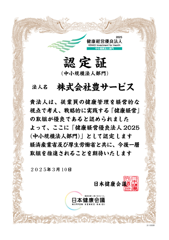 健康経営優良法人2025「中小規模法人部門」に認定されました。