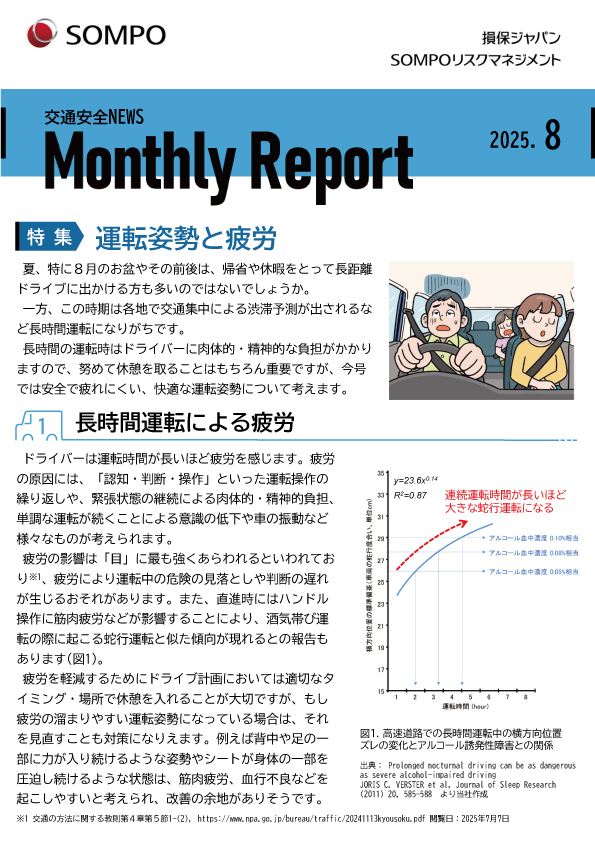SOMPOリスクマネジメント発行の交通安全ニュースMonthlyReport8月号です。