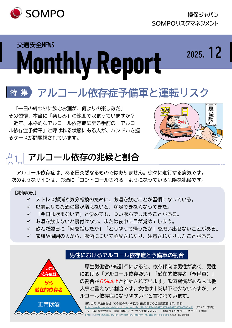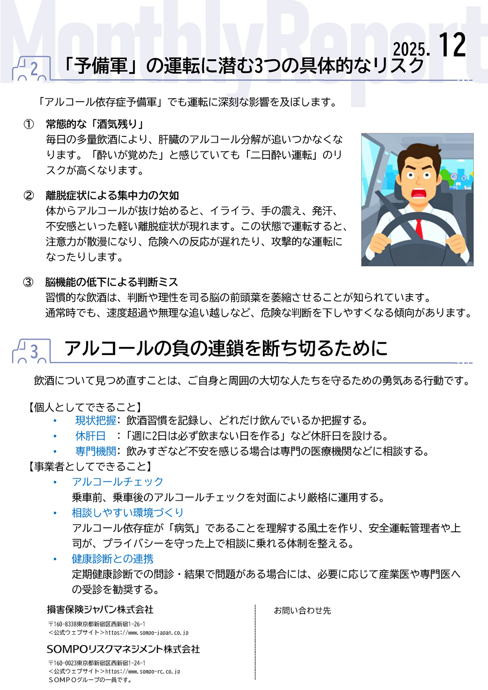 SOMPOリスクマネジメント発行の交通安全ニュースMonthlyReport12月号です。